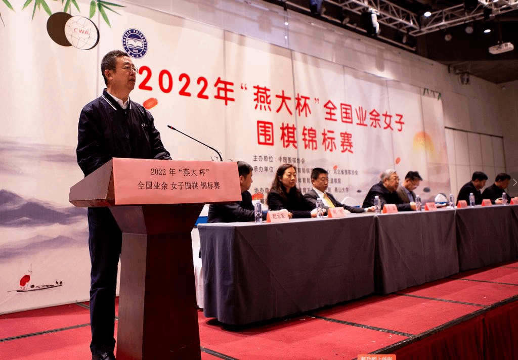 【新闻中心讯】3月10日,全国围棋师资培训单位授牌仪式暨2022年“燕大杯”全国业余女子围棋锦标赛开幕式在秦皇岛首旅京伦酒店举行,中国围棋协会主席林建超、副主席兼秘书长王谊、秦皇岛市副市长焦大伟、燕山大学副校长任家东、河北省体育局棋牌运动中心主任胡明,秦皇岛市体育局局长肖凤利,河北省围棋协会秘书长赵余宏,秦皇岛市体育局二级调研员曹武等相关领导出席开幕式。