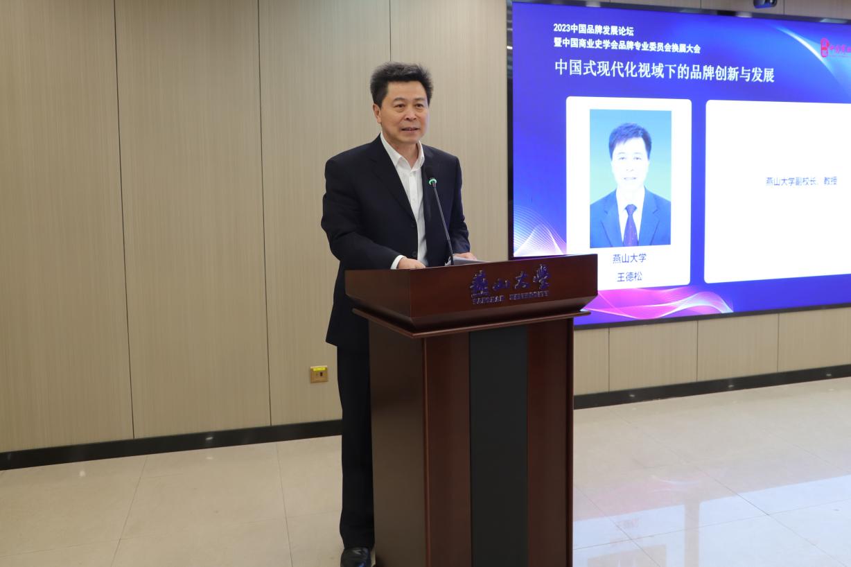 王德松教授首先对参加此次会议的各位专家学者表示热烈欢迎,对“2023中国品牌发展论坛”的成功召开表示祝贺;然后,详细介绍了燕山大学的发展历程、重大科研成果以及经济管理学院的学科建设情况。王德松教授在致辞中表示,习近平总书记在《党的二十大报告》中,指出了实现“经济高质量发展取得新突破,科技自立自强能力显著提升,构建新发展格局和建设现代化经济体系取得重大进展”的目标任务,而“品牌”作为高质量发展的重要象征,深入推进品牌相关领域的科学研究和人才培养,对于助力实现中国式现代化背景下的市场经济发展具有重要的现实意义。
