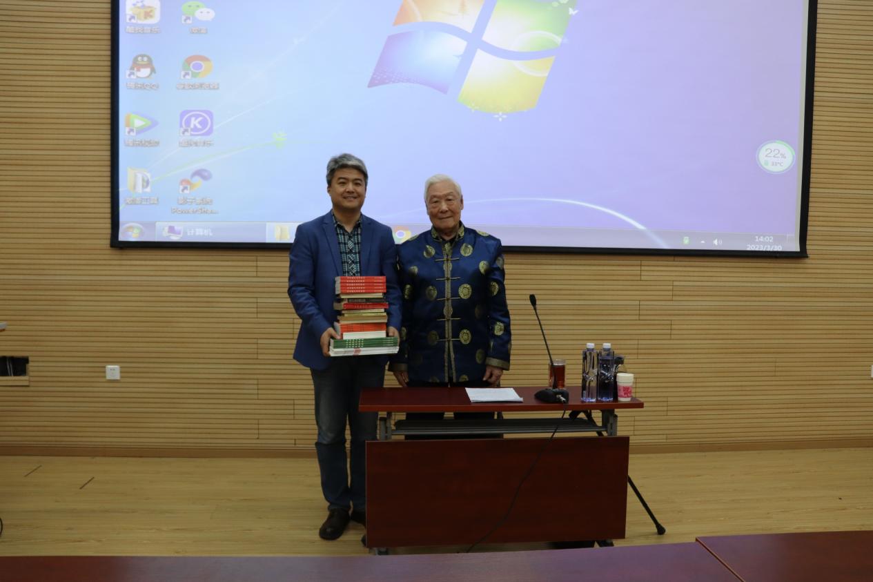 【新闻中心讯】3月30日下午2点,艺术与设计学院特邀唐山市音协名誉主席、著名作曲家、民歌演唱家、民族音乐理论家、指挥家、冀东民歌传承人、古诗词吟唱传承人刘荣德先生,在燕山大学音乐馆B105举行《冀东民歌的影响和艺术价值》乐竞体育在线讲座,学院近200名师生参与聆听。讲座开始前举行了赠书仪式,刘荣德先生将自己毕生撰写并出版的专著赠予学院,学院党委副书记宁岩鹏接受赠书。