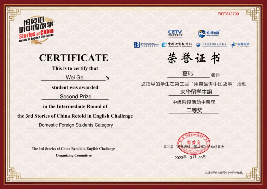 据了解,“用英语讲中国故事”活动由教育部下中国教育电视台等四家厅级单位联合主办或指导,首个以中华文化传播为主题,面向海内外青少年,覆盖全学段的人文综合素养类活动,通过英文朗诵(其中来华留学生组使用中文或英文)、创意演说、戏剧独白及中华才艺等形式为广大青少年提供弘扬中华优秀文化、与世界交流的平台,充分展示各地素质教育和来华留学生的国际中文教育的丰硕成果。活动旨在落实二十大提出的“增强中华文明传播力影响力,坚守中华文化立场,讲好中国故事、传播好中国声音,展现可信、可爱、可敬的中国形象,推动中华文化更好走向世界”。(编辑 褚玉晶)