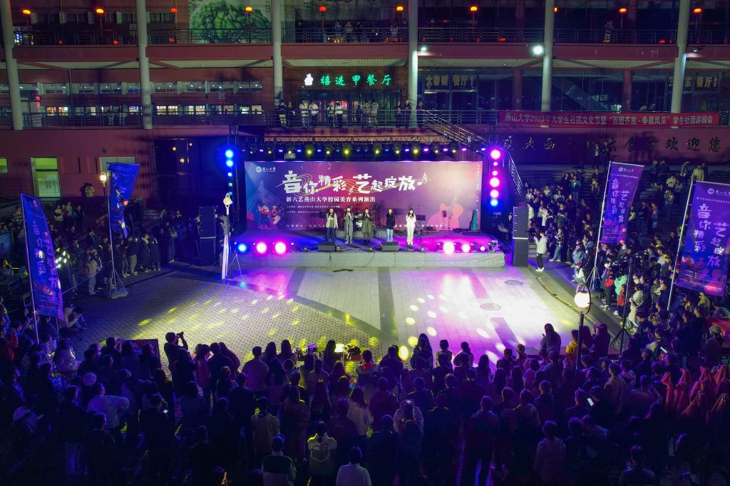 【新闻中心讯】4月21日晚18:30,在节奏动感、充满浓郁民族风情的歌伴舞《最炫民族风》中,我校“艺路同行”美育通识课系列展演第二场音乐会在燕山大学西区食堂广场拉开帷幕。此次音乐会是由宋军老师讲授的《音乐实践-阿卡贝拉音乐团队》《音乐实践-流行乐器组合体验》《音乐实践-视唱练耳》美育通识课的同学联合表演的,参加演出的学生涵盖了我校各个学院的非专业学生。整场三十余首作品的创作、编排等每个环节全部由学生参与完成。同学们用音乐的方式尝试团队协作,完成电声乐队的配器调音、组合演唱的声部平衡、唱跳风格的舞蹈编导,收获了友谊,展现了勇于创新、朝气蓬勃的青春风采。台上与台下积极互动,在《我爱你中国》的合唱曲中,历时2个半小时的音乐会圆满结束。