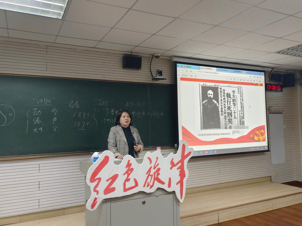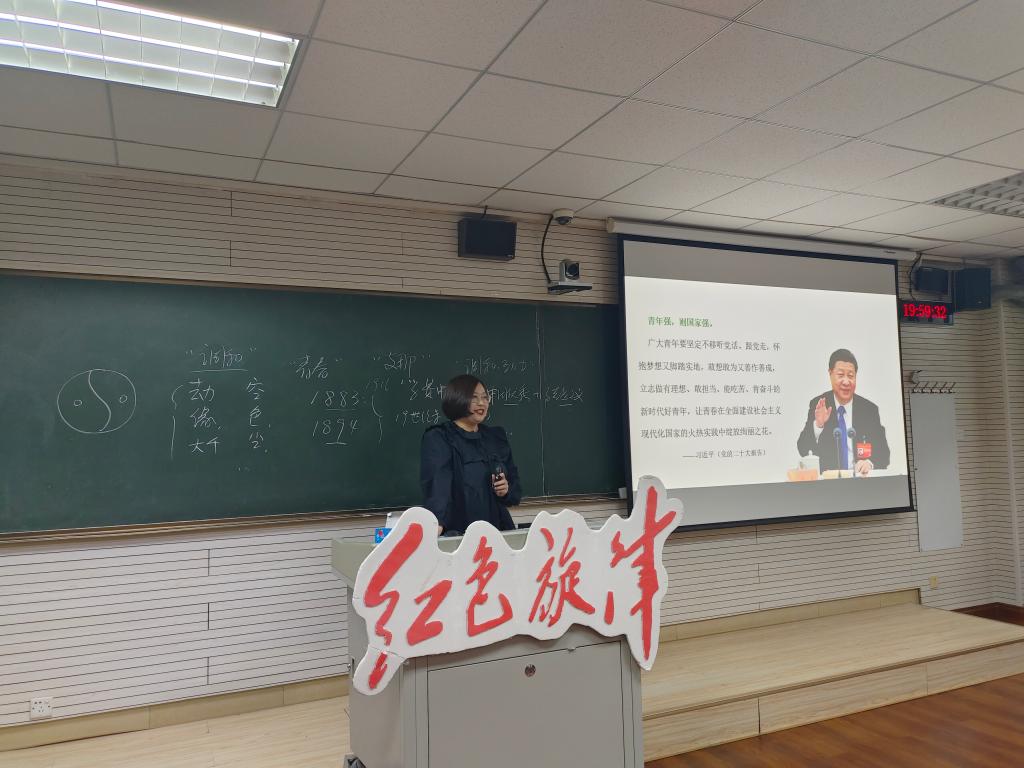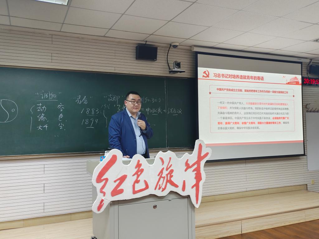 【新闻中心讯】4月27日晚7:00,由马克思主义学院主办,马克思主义研究生会承办的第七十三期“红色旋律”读书会在我校第四教学楼103教室举行,本期主题是“中国共产党与青年——读李大钊《青春》、毛泽东《青年运动的方向》、习近平《发扬五四精神,不负伟大时代》”,由马克思主义学院李晔、李婷婷、梁明伟老师主讲。