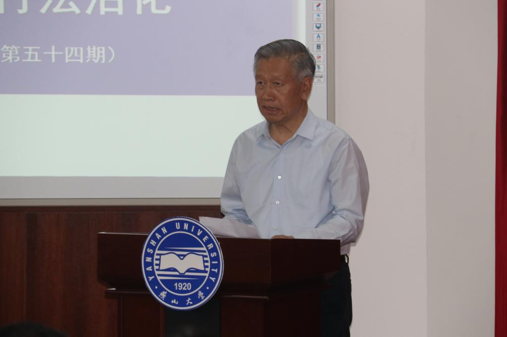 【新闻中心讯】近日,由燕山大学文法学院(公共管理学院)、燕山大学全面依法治省研究院共同主办的燕山大学第五十四期“法律讲坛”在第三教学楼213报告厅举行。中国法学会副会长、中国法学会民事诉讼法学研究会会长景汉朝作题为“把握权力运行规律与机制 推进公权力运行法治化”的专题报告。