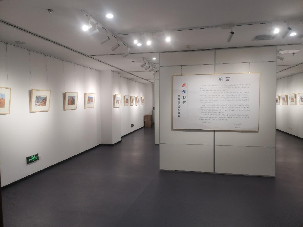 本次展览展出了艺术与设计学院教师郝建斌在韩国访学期间创作的几十幅有关长城与古堡内容的水彩艺术作品,画面表现了长城与古堡这一类伟大人文景观的壮美与深沉内涵,每一幅作品都倾注了作者对祖国山河深深的眷恋与爱意。郝建斌多年从事长城及周边古村落文化遗产的保护研究,坚持把利用艺术形式的保护拓展为长城文化保护传承的新路径,并实际践行此理念,创作了很多以长城为母题的雕塑和绘画作品。