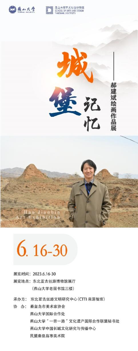 【新闻中心讯】6月16日,“城·堡记忆”——郝建斌绘画作品展在燕山大学东北亚古丝路博物馆展厅开幕。展览由燕山大学艺术与设计学院主办,东北亚古丝路文明研究中心承办,秦皇岛市美术家协会、燕山大学国际合作处、燕山大学“一带一路”文化遗产国际合作联盟秘书处、燕山大学中国长城文化研究与传播中心、民盟秦皇岛市美术院协办。