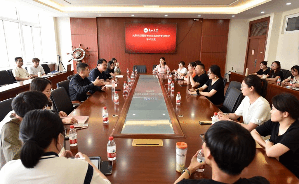 第二阶段,贾峥在经管楼A215会议室与师生代表座谈,围绕着前沿研究方向、国际顶刊论文发表、在美师生留学和学生联合培养等内容开展了深入交流。