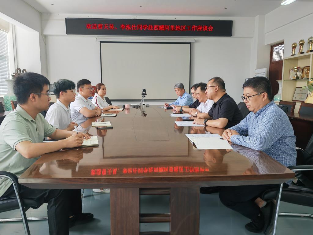 【新闻中心讯】近日,艺术与设计学院在美术馆C305会议室为即将赴西藏阿里地区基层工作的2023届本科毕业生曹天昊、李泓仕举行欢送仪式。学院班子全体成员、院团委书记、2023毕业班辅导员参加会议。
