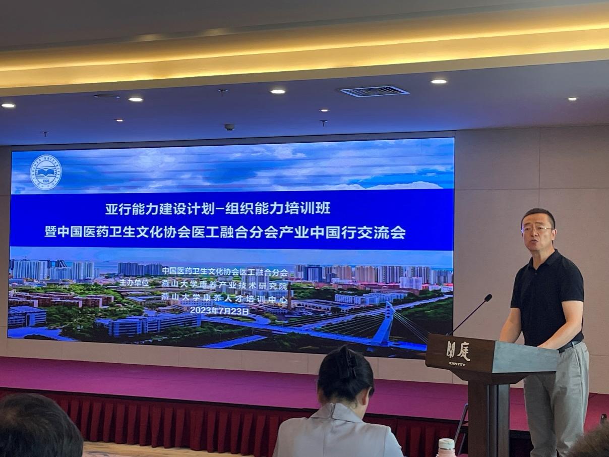 【新闻中心讯】近日,亚行能力建设计划-组织能力培训班暨中国医药卫生文化协会医工融合分会产业中国行交流会在燕山大学举行。医工融合分会会长崔大祥等8位专家及燕山大学副校长任家东、环境与化学工程学院院长高大威、机械学院教授陈子明等多位教师出席会议,秦皇岛市医疗康养机构、企事业单位代表共计80余人参加了本次交流会。会议由燕山大学康养产业技术研究院院长戚伟欣主持。
