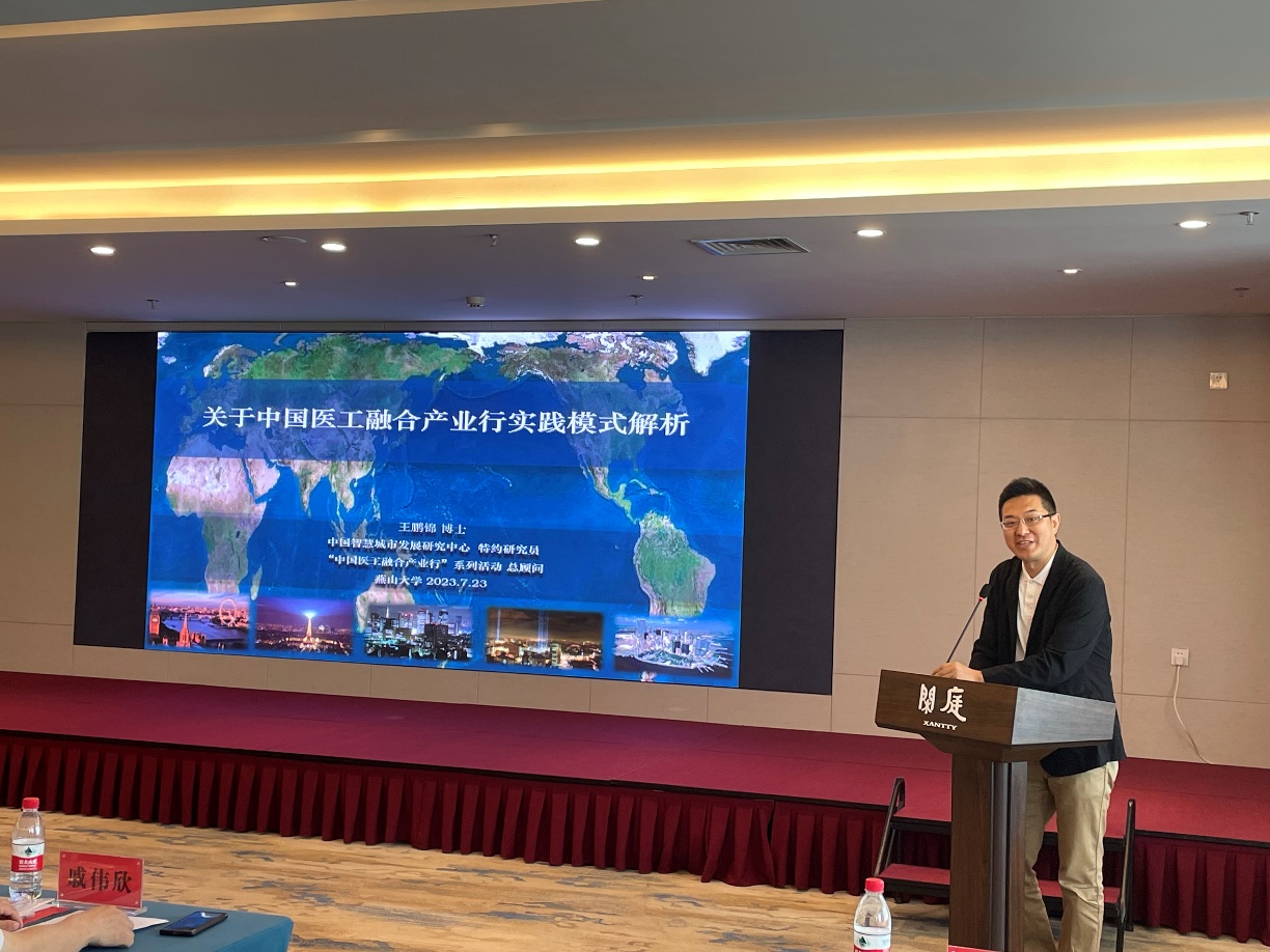 随后,医工融合分会会长崔大祥,中铁建设城市运营公司副总经理苏剑,中国医药卫生文化协会副秘书长、中国人民大学医院管理研究中心研究员曹健,中国智慧城市发展研究中心特约研究员王鹏锦分别作了《医工融合:促进纳米诊疗技术的研发与转化》《银色经济、金色时代》《中英两国养老服务模式研究》《关于中国医工融合产业行实践模式解析》报告。