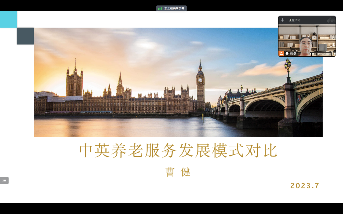 崔大祥在报告中以临床需求为目标,以纳米技术为工具,重点介绍包括纳米诊疗技术的优势、呼气标记物检测筛查诊断疾病、胃肠道诊疗纳米机器人等纳米诊疗技术的研发和转化探索。苏剑在报告中提出养老产业的痛点与需求扑面而来,虽历经跌宕起伏,虽面对成长与失落,虽供给与需求错配,但银发经济始终在持续拓宽的赛道,60后老年客群“规模性”入场,品牌企业加速进入,相信未来5年养老产业将提前完成产业培育期,正式迈入产业爆发期。曹健在报告中围绕中英两国的不同养老模式进行对比分析,重点介绍我国养老政策、城市养老发展模式探索,及英国的养老服务体系、护理现状、养老金改革与护理经验借鉴。王鹏锦的报告围绕医、药、工城市产业发展中容易出现的“七无”问题,就如何系统的解决产业问题,形成医药工城市产业顶层设计联合体,搭建医工融合产业运营平台建设模型进行重点介绍。