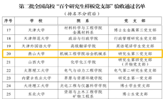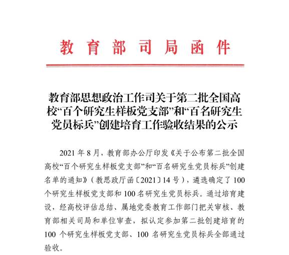 第二批全国高校“百个研究生样板党支部”验收通过名单