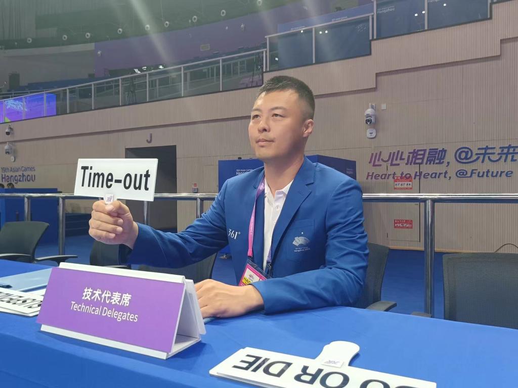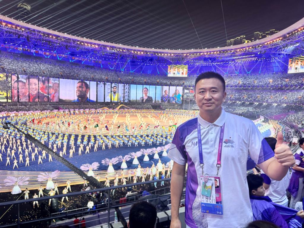 【新闻中心讯】在举国欢庆中秋、国庆双节之际,西子湖畔,杭州第19届亚运会如期举行。在这场举国关注的国际性体育赛事中,闪耀着我校两位教师代表的身影。体育学院教师韩东(国家级排球裁判员)、曹亮(国家级卡巴迪裁判员),受第19届亚运会组委会竞赛部邀请,以技术官员的身份参加本次亚运会排球、卡巴迪项目执裁工作。