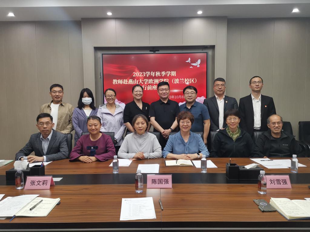 【新闻中心讯】10月8日下午,燕山大学2023学年秋季学期教师赴燕山大学欧洲学院(波兰校区)行前座谈会在国际教育学院208会议室召开,燕山大学党委常委、副校长陈国强,国际教育学院、欧洲学院院长张文莉,西里西亚智能科学与工程学院副院长刘雪强,欧洲学院执行院长刘玉文,国际教育学院、欧洲学院副院长吴伟龙以及10位赴燕山大学欧洲学院(波兰校区)的任课教师参加座谈会,会议由国际教育学院、欧洲学院院长张文莉主持。