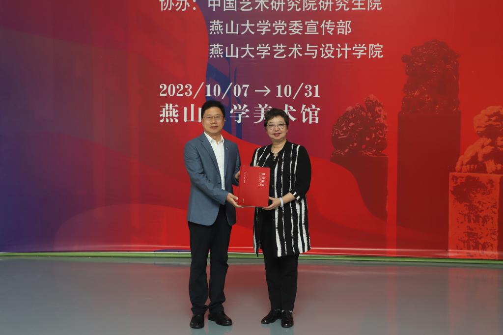 开幕式上,为助力燕山大学篆刻基地建设,骆芃芃代表中国艺术研究院篆刻院为我校捐赠了篆刻图书,赵险峰代表燕山大学接受了赠书。