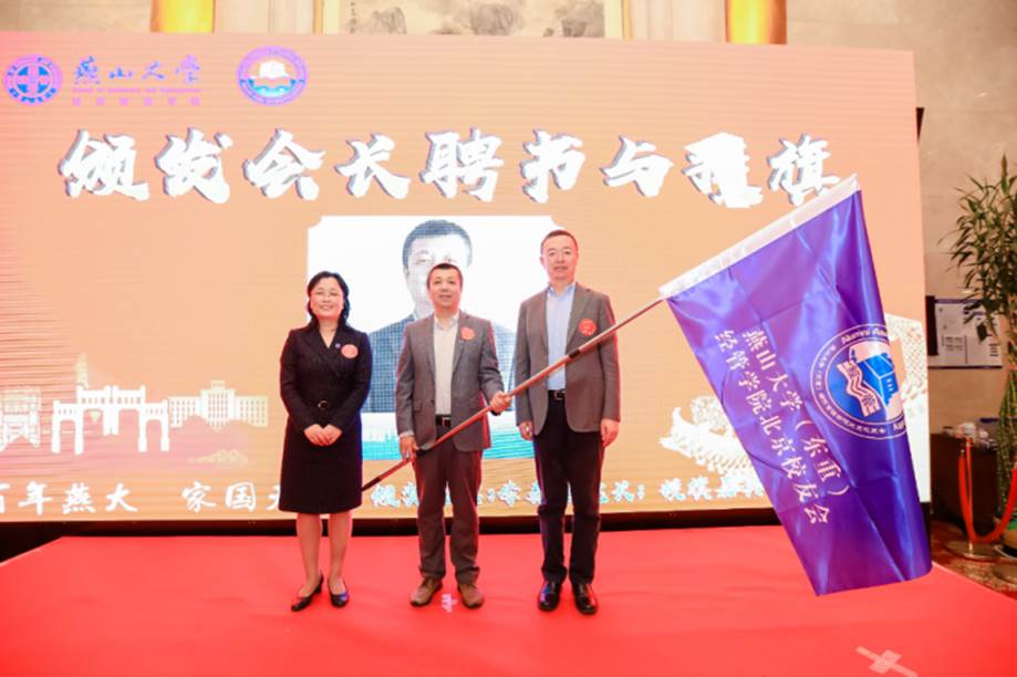 随后,举行受聘及授旗仪式,张继超接受经管学院北京校友会会旗。