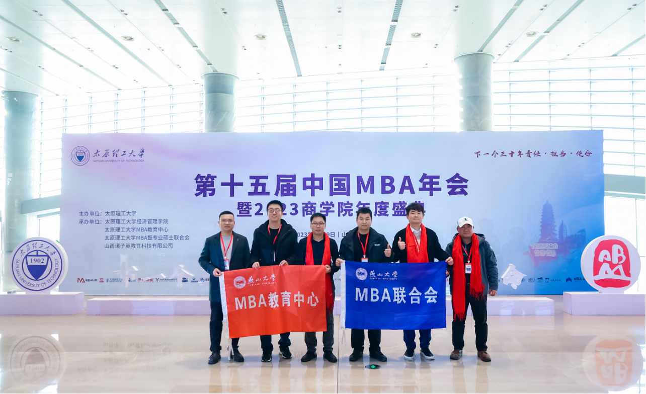 【新闻中心讯】12月8日-10日,第十五届中国MBA年会暨2023商学院年度盛典在“汾水之滨”山西太原隆重举办。会议由太原理工大学主办,太原理工大学经济管理学院、太原理工大学MBA教育中心、太原理工大学MBA暨专业硕士联合会、山西诸子英教育科技有限公司承办。来自政界、商界、学界及百余所高校近千名师生代表共同参与,为推动中国MBA教育事业的发展献言献策。燕山大学MBA教育中心主任刘海鸥、招生主管蔡新江、燕山大学MBA联合会主席谢荣华、副主席李豹强、李文富、黄桂翔代表我校参加了本次盛典。