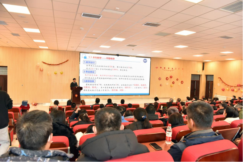 会上,院长齐跃峰从本科教学、科学研究与研究生培养、创新创业、教师队伍建设、对外交流、学团工作等六方面总结回顾了学院2023年整体工作,分析了全年关键性考核指标完成情况。之后,他对全体教职工一年来的辛勤付出表示感谢,并勉励大家要继续奋力拼搏,争创佳绩。