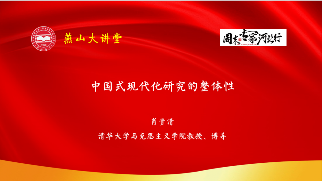 【新闻中心讯】4月30日上午8:30,由燕山大学马克思主义学院与社会科学处主办的燕山大讲堂在东校区三教320报告厅举行,清华大学习近平新时代中国特色社会主义思想研究院常务副院长、中共党史党建研究院副院长、马克思主义学院教授、博士生导师、《高校马克思主义理论研究》执行主编肖贵清为我校师生做题为《中国式现代化研究的整体性》专题讲座。讲座由马克思主义学院院长柴勇主持。