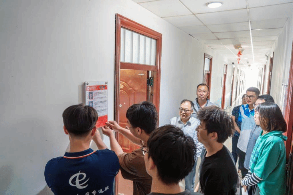 随后,学院领导带领全体辅导员深入学生宿舍,亲自为“朋辈榜样宿舍”挂牌,并勉励挂牌宿舍学生严格要求自己、团结同学,发挥先锋模范作用。会后,同学们表示这次宿舍挂牌不仅是荣誉,更是激励和督促;今后一定会继续在学习和生活中主动亮明身份,以最好的青春、最美的奋斗,接好新一代燕大人的接力棒。
