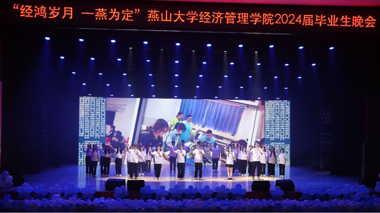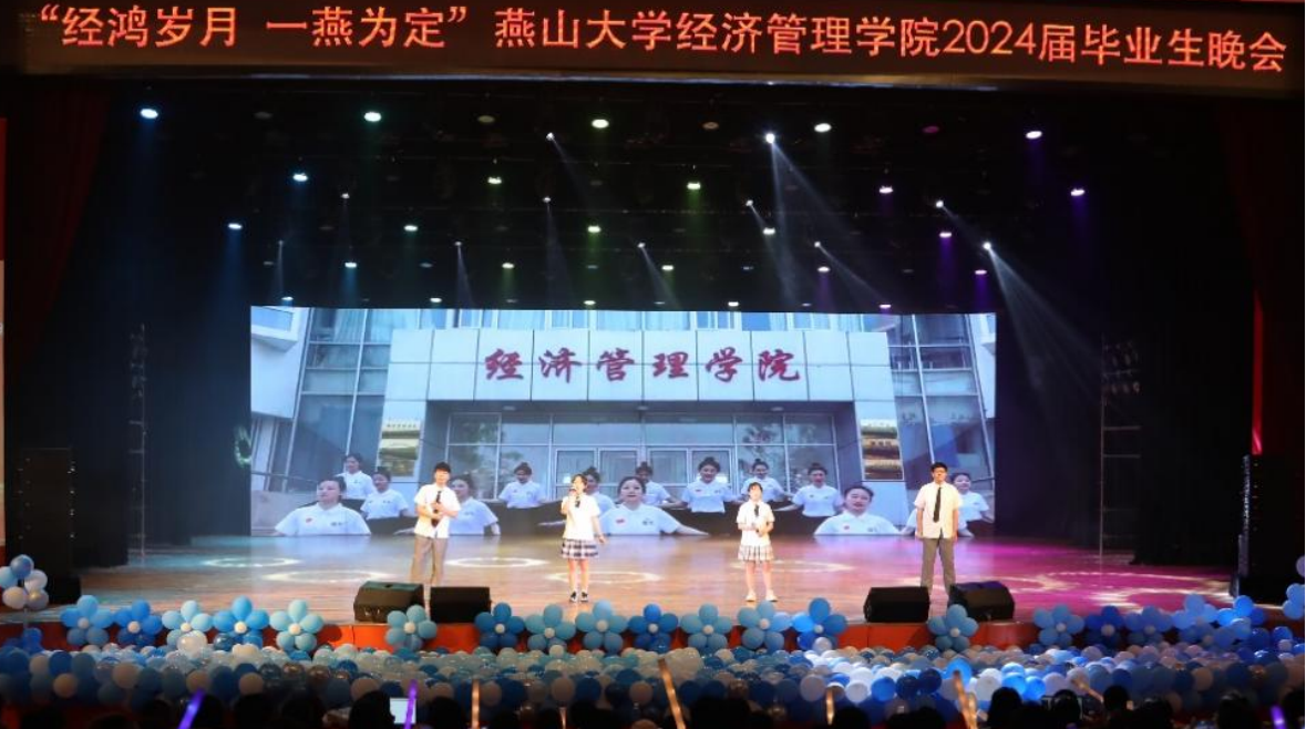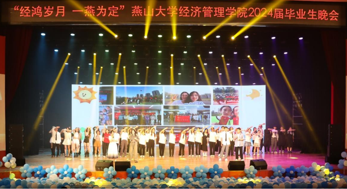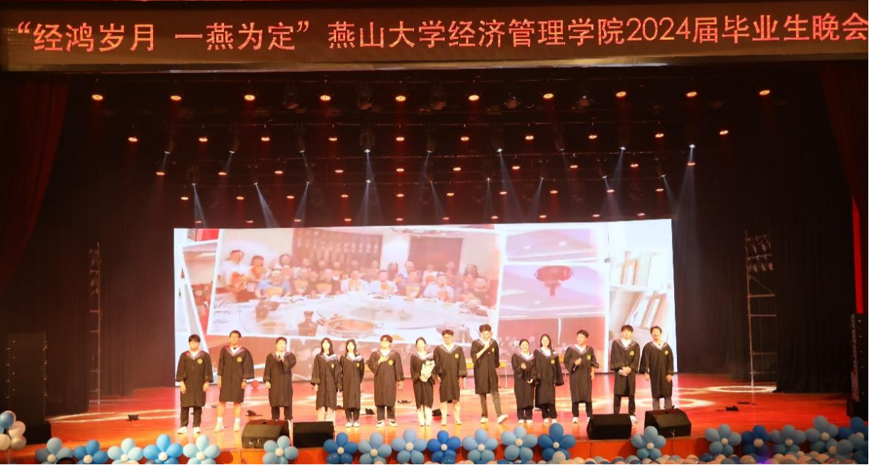 珍藏经燕记忆、共赴惊艳未来。“经鸿岁月 一燕为定”燕山大学经济管理学院2024届毕业生晚会圆满落幕。这个美好的夜晚,所有毕业生们满怀深情和不舍,更胸怀壮阔和希冀,告别母校,迎接新的开始。祝愿所有毕业生们前途似海,来日方长,在路上的人终将梦想成真!(编辑 褚玉晶)