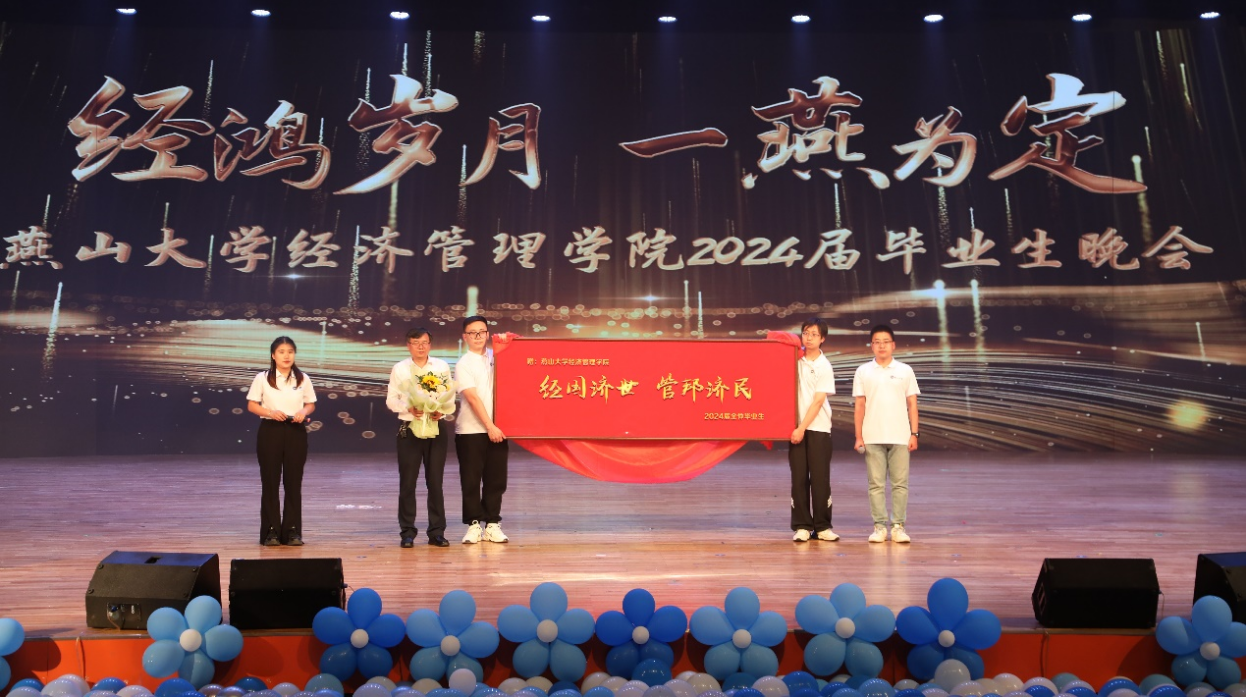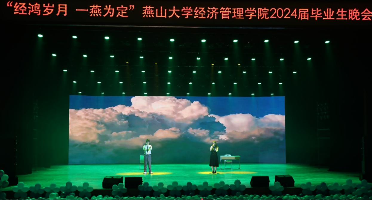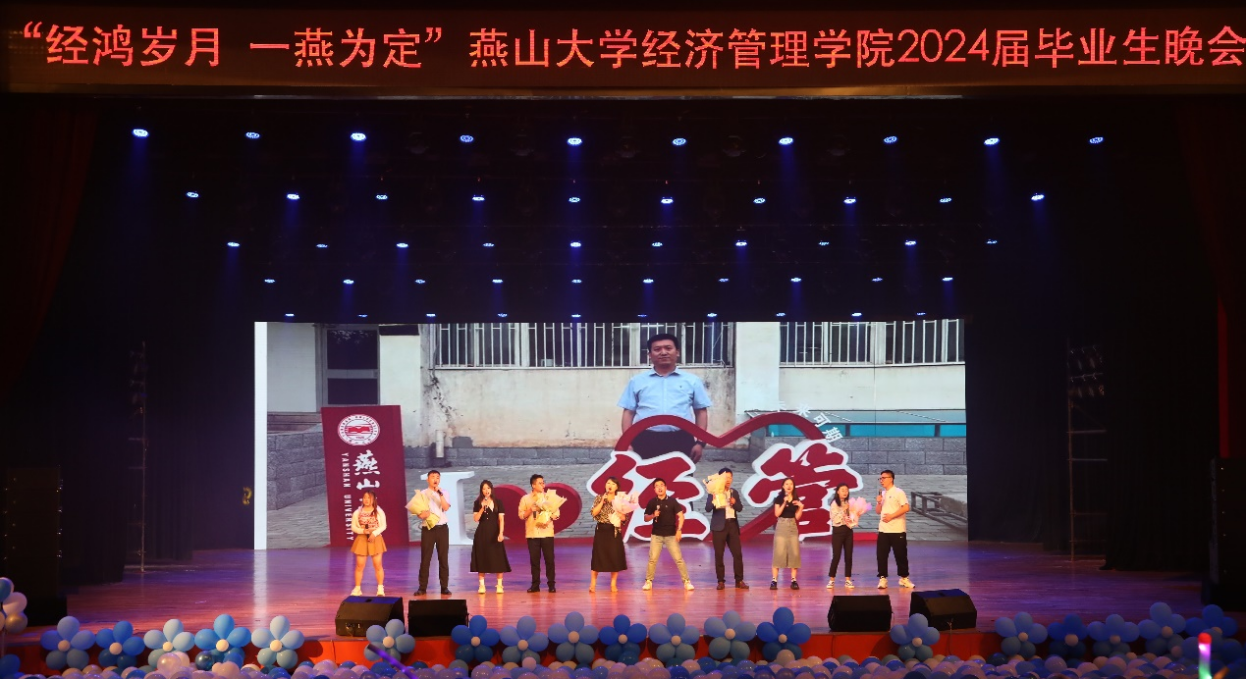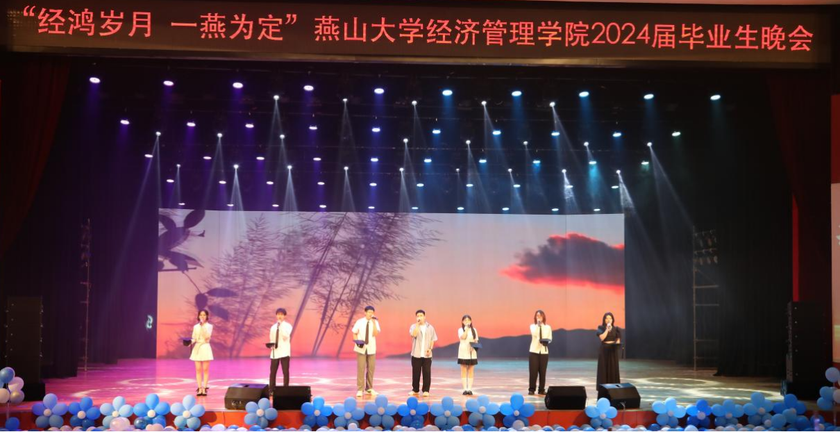 珍藏经燕记忆、共赴惊艳未来。“经鸿岁月 一燕为定”燕山大学经济管理学院2024届毕业生晚会圆满落幕。这个美好的夜晚,所有毕业生们满怀深情和不舍,更胸怀壮阔和希冀,告别母校,迎接新的开始。祝愿所有毕业生们前途似海,来日方长,在路上的人终将梦想成真!(编辑 褚玉晶)