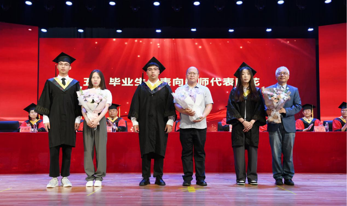 典礼上,毕业生代表为各系教师代表献花,向他们的辛勤付出和默默奉献表示感谢。