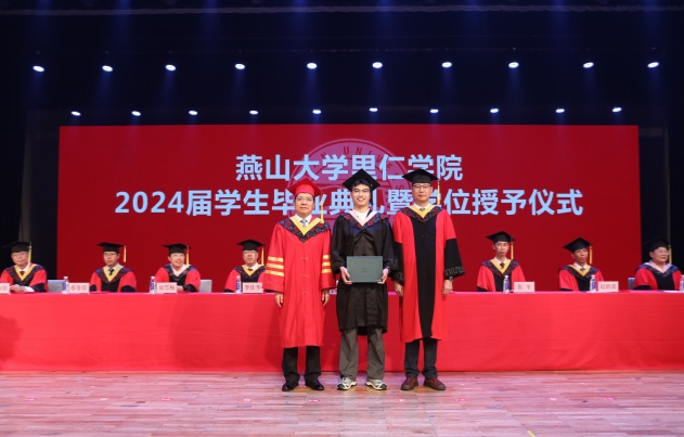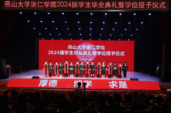 典礼仪式上,里仁学院院长李昊宣读了《关于准予王博浩等1015名本科学生毕业并授予学士学位的决定》;里仁学院党委副书记兼副院长张冬宣读了《关于表彰燕山大学里仁学院2024届省级优秀毕业生的决定》;校院领导为2024届省级优秀毕业生代表颁发荣誉证书;里仁学院正处级辅导员尚雪梅为2024届校友年级理事颁发聘书。