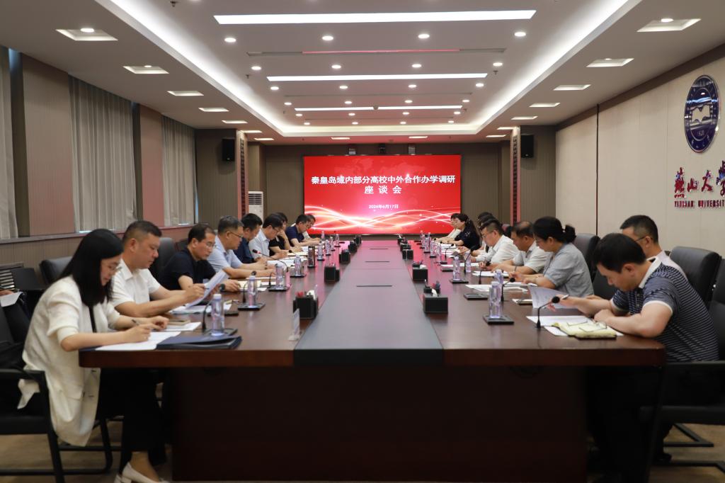 【新闻中心讯】6月17日,河北省教育厅中外合作办学工作调研组在燕山大学召开秦皇岛域内高校中外合作办学座谈会。东北大学秦皇岛分校、河北科技师范学院、河北环境工程学院、河北对外经贸职业学院、秦皇岛职业技术学院、河北建材职业技术学院等高校合作办学相关单位负责同志参加座谈交流,学校党委常委、副校长陈国强出席并致辞。