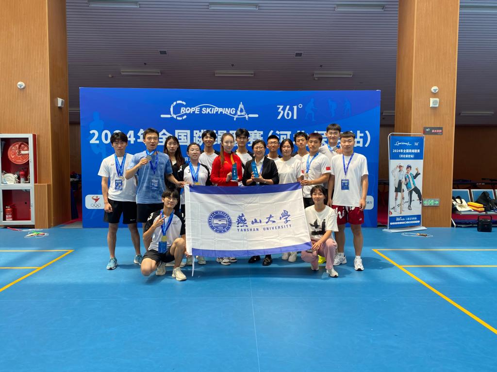 【新闻中心讯】7月13日至7月15日,由国家体育总局社会体育指导中心、中国毽球协会主办的2024年全国跳绳联赛(河北保定站)于河北大学(七一路校区)举办,吸引了来自全国各地的众多优秀跳绳队伍参加。燕山大学代表队由体育学院教师朱君老师和高婧老师担任教练员,带领包括14名体育学院学生以及4名普通学院学生在内的共18名学生参加比赛。