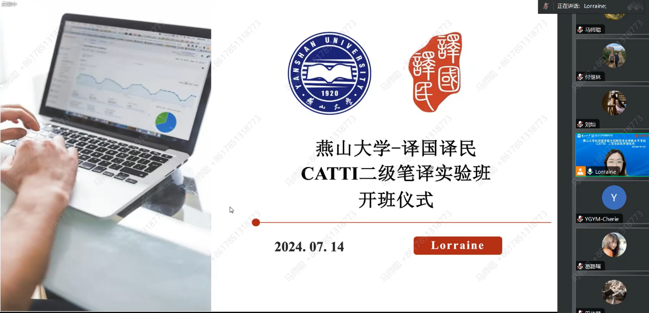【新闻中心讯】7月14日上午,燕山大学外国语学院线上举行了“全国翻译专业资格水平(CATTI)二级笔译培训实验班”开班仪式。外国语学院副院长付继林,译国译民集团华北区总经理王晓飞、培训部总经理谢亮亮、培训部高级讲师吴俊阳、外国语学院研究生教学秘书安东学院经选拔参加培训的24名通过三级笔译考试的MTI翻译专业学位研究生。开班仪式由译国译民集团公司培训部项目经理徐然主持。