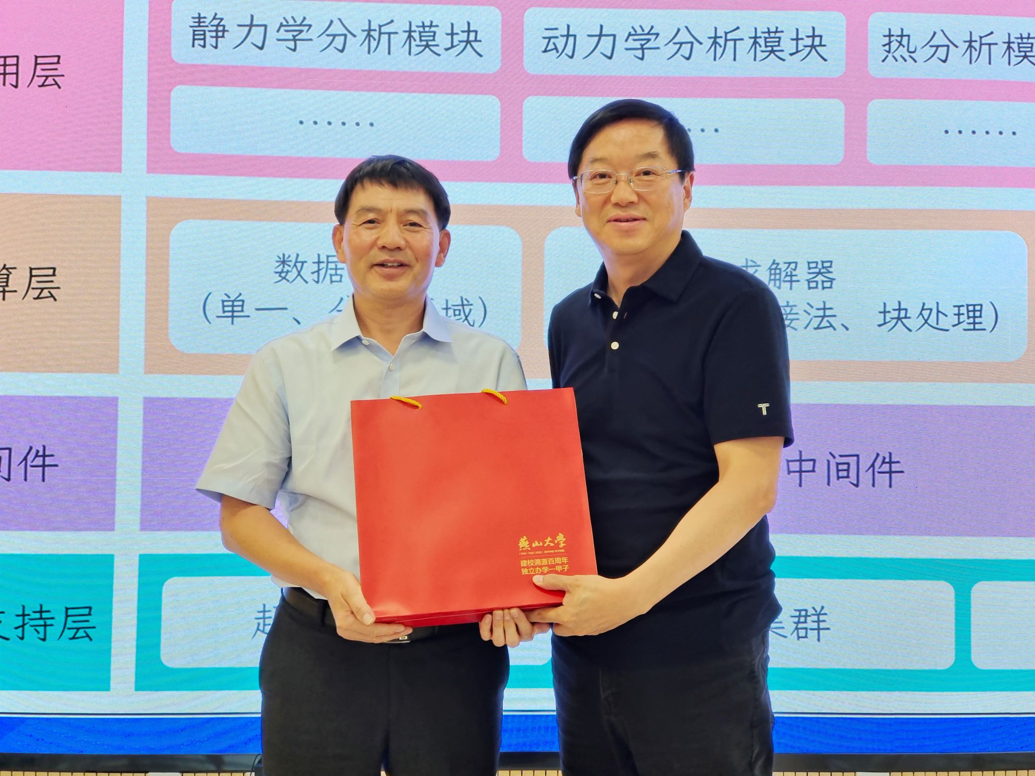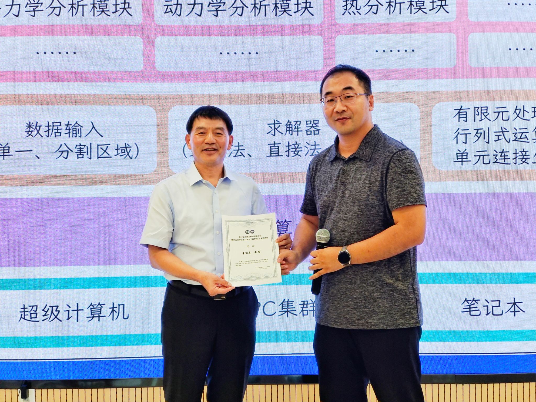 首先,董勤喜教授作了题为《国产高端工业软件赋能智能制造》的报告。基于超级计算算法及其生成的支持软件,简要介绍了数据结构、并行处理方法、数据交换、仿真实现等内容,并探讨了这些要素在智能制造相关领域高端工业软件研发中的应用。董勤喜院士还介绍了团队在CAE核心软件开发方面的最新进展和服务国家战略的部分工作。