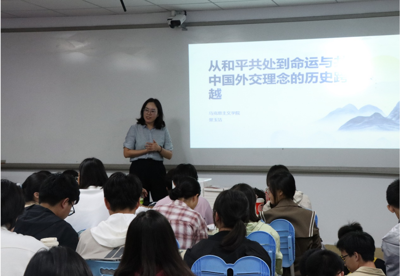 在读书会上,常玉洁老师分享的主要内容是理清从和平共处五项原则到人类命运共同体理念的生成逻辑和发展逻辑。首先,常老师点明和平共处五项原则生成的时代条件,即当时要解决“国家间关系应奉行何种准则才能捍卫各国主权、维护世界和平、谋求全球发展”的时代课题,并指出,在当今的时代条件下,我们仍面临对该时代课题的进一步探索。其次,常老师通过对《论人民民主专政》《我们的外交方针和任务》《和平共处五项原则》这三篇文献的解读,讲述了和平共处五项原则的生成过程。再次,常老师围绕“独立自主”、“和平共处五项原则”、“求同存异”这三个关键词对《在亚非会议全体会议上的发言》进行了解读,进而揭示了和平共处五项原则的内涵和时代价值。最后,常老师联系现实,讲述了百年未有之大变局背景下的时代之问和中国方案,指出在世界进入新的动荡变革期这个大形势下,面对“世界怎么了、我们怎么办”的时代之问,中国给出的方案是构建人类命运共同体。同时,常老师引导同学们思考了其中的发展逻辑,以及70年后的外交理论对70年前的外交理论的继承和发展。