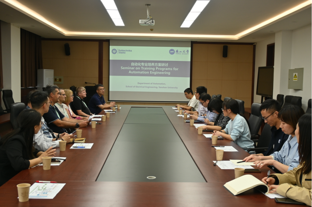 【新闻中心讯】为充分利用中外合作办学的引进资源,拓展我校专业人才培养的国际视野,2024年9月27日下午,燕山大学西里西亚智能科学与工程学院(以下简称西里西亚学院)联合电气工程学院,组织西里西亚技术大学外籍教师代表到自动化专业进行参观交流。西里西亚技术大学自动控制学院副院长卡塔琳娜·莫西斯卡(Katarzyna Mościńska)、西里西亚学院副院长刘雪强、电气工程学院自动化系主任梁振虎、电子实验中心主任丁伟利,以及中外双方主要教学管理人员,自动化系骨干教师参加了本次活动。