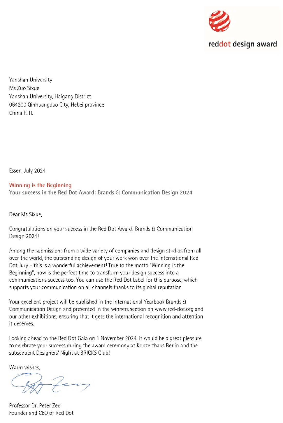 其中,由我校作为唯一单位报送的《2023 Beijing Zoo Spring Creative Market》作品,是我校首次获得品牌与传达设计类红点奖这一国际顶级设计荣誉。由我校联合北京心想事成科技有限公司、河北衡橡科技股份有限公司共同设计、研发制作的《便捷式护理洗浴机》,是我校产品类第8次获得这一国际顶级设计荣誉。艺术与设计学院师生多次获此殊荣,既是国际设计界对设计本身的认可,也证明了学院设计类专业在国际领域的实力,体现了艺术与设计学院近年来坚持教学改革,创新教学模式,强化实践教学的显著成效,标志着艺术与设计学院人才培养的设计创新能力和国际影响力又迈上了一个新的台阶。