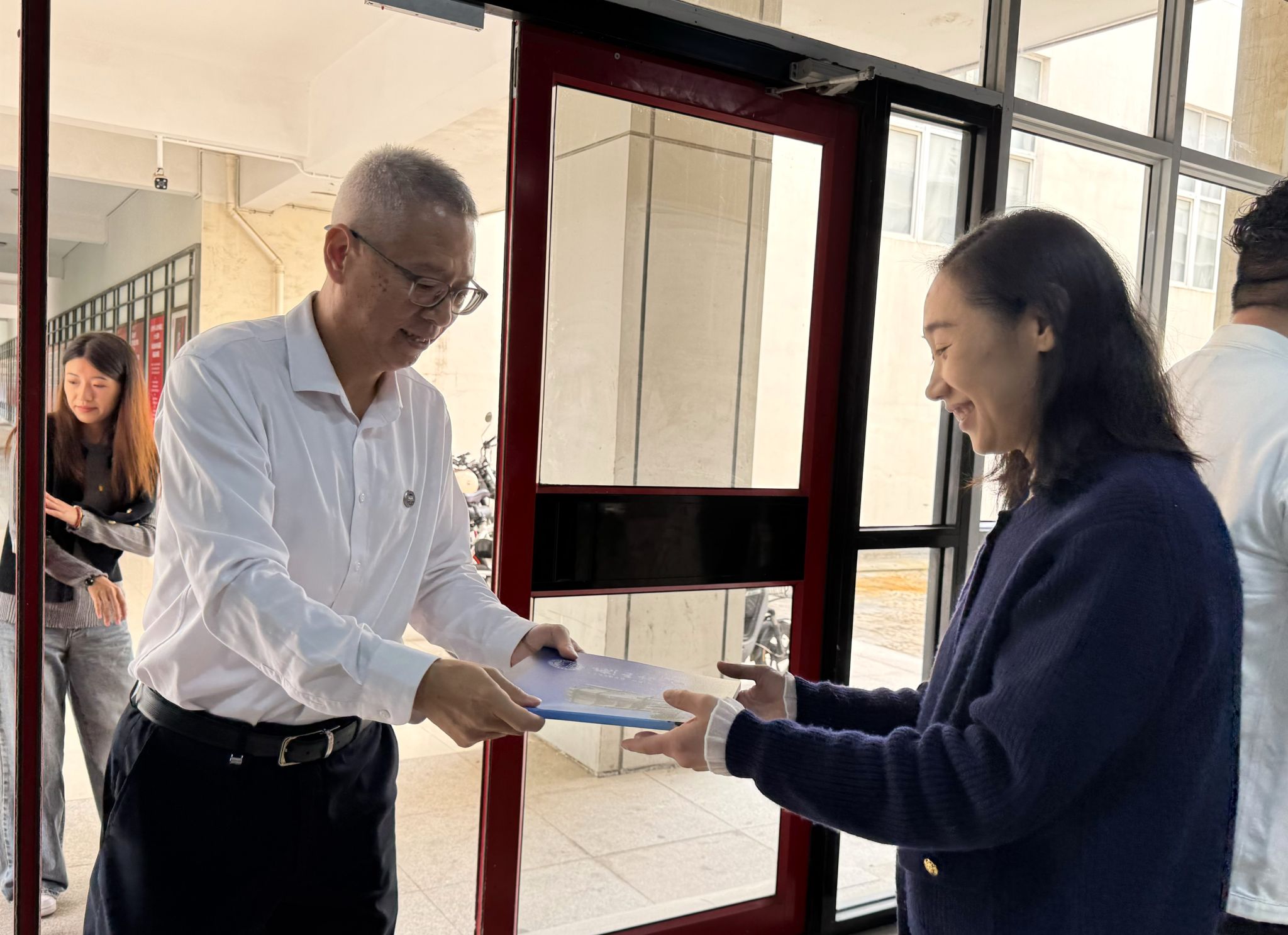张向前代表学校向校友赠送礼物