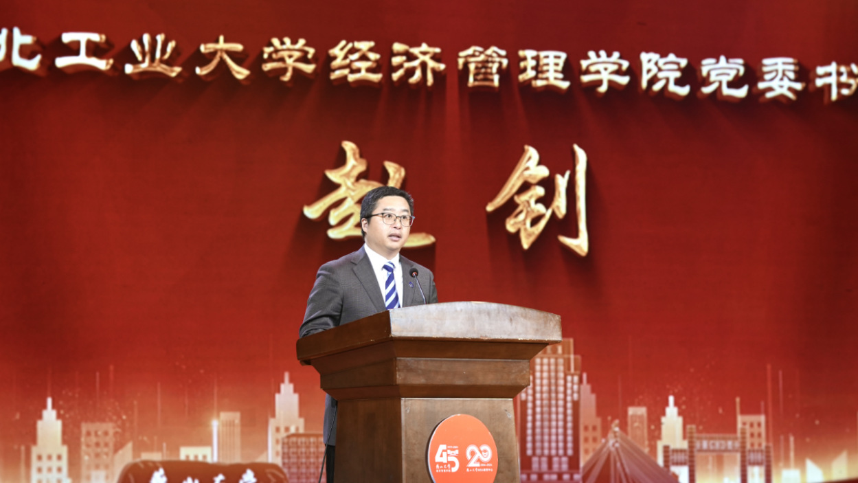 河北工业大学经济管理学院党委书记赵钊代表兄弟院校致辞。他表示燕山大学经济管理学院以服务区域经济建设、助力中国社会发展为己任,培养了一大批德才兼备、视野广阔、敢于担当的精英之才,办学经验十分值得学习借鉴。他表示河北省内高校的经管类学院,将与燕山大学经济管理学院一道,互鉴互促、携手并进,为中国式现代化建设贡献更大力量。