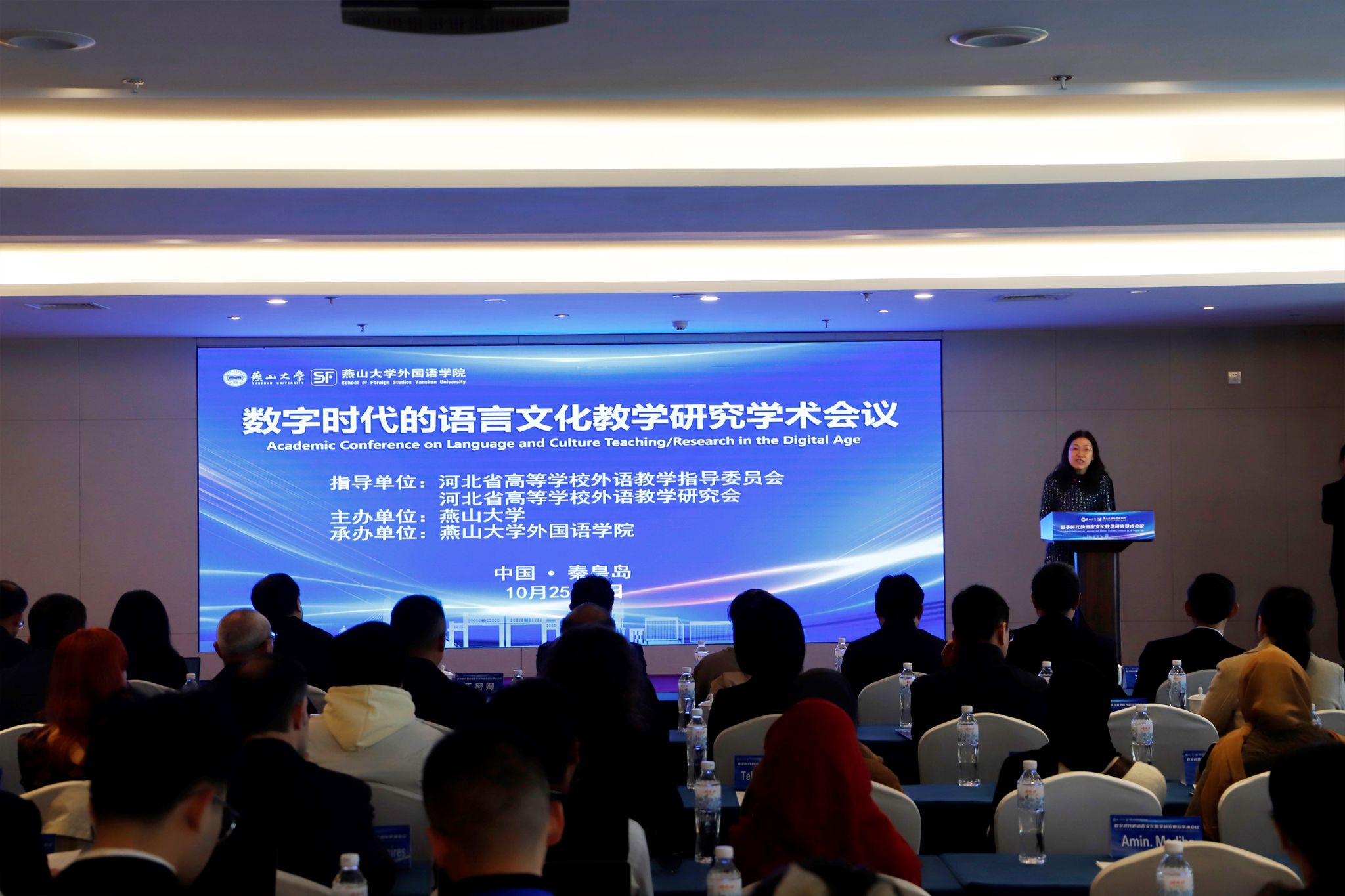 【新闻中心讯】10月25日-27日,“数字时代的语言文化教学研究”国际乐竞体育在线会议在燕山大学成功举行,校党委书记赵险峰出席会议致辞并为客座教授颁发了聘书。会议以“技术融合·创新发展”为主题,旨在深入探讨数字化转型对语言文化的教学和研究的影响,来自中、英、美、日、韩、德、巴基斯坦、俄罗斯、摩洛哥、土库曼斯坦等国内外30余所大学的150余名嘉宾、专家学者齐聚一堂,共襄盛会。会议安排了手语翻译和英语同声传译。会议由河北省高等学校外语教学指导委员会、河北省高等学校外语教学研究会指导,燕山大学主办,燕山大学外国语学院承办。会议开幕式由外国语学院院长王林海主持,闭幕式由副院长付继林主持。