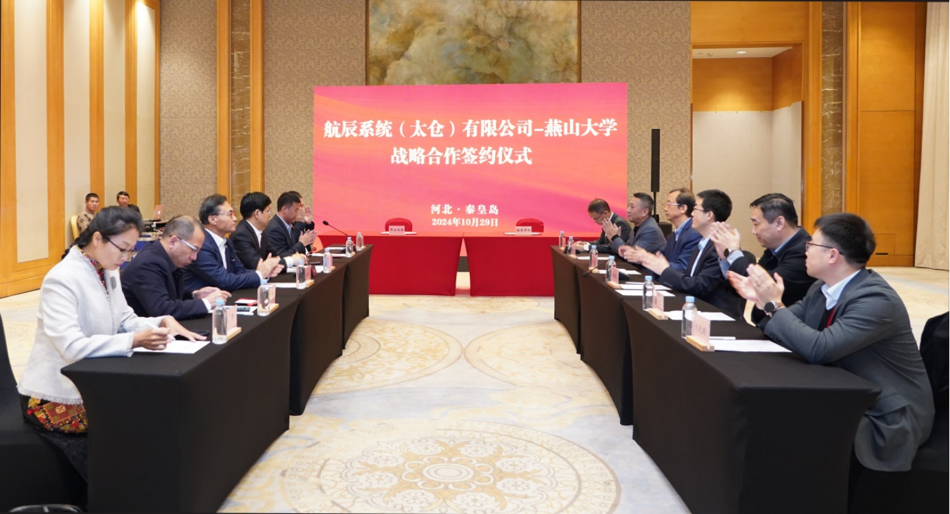 【新闻中心讯】10月29日下午,航辰系统(太仓)有限公司与燕山大学战略合作签约仪式在秦皇岛香格里拉酒店会议室举行。中国工程院院士、北京航空航天大学教授焦宗夏,北京航空航天大学教授、航辰系统(太仓)有限公司董事长尚耀星,航辰系统(太仓)有限公司总经理姜峰,燕山大学党委副书记、校长赵丁选,机械工程学院孔祥东教授出席签约仪式。