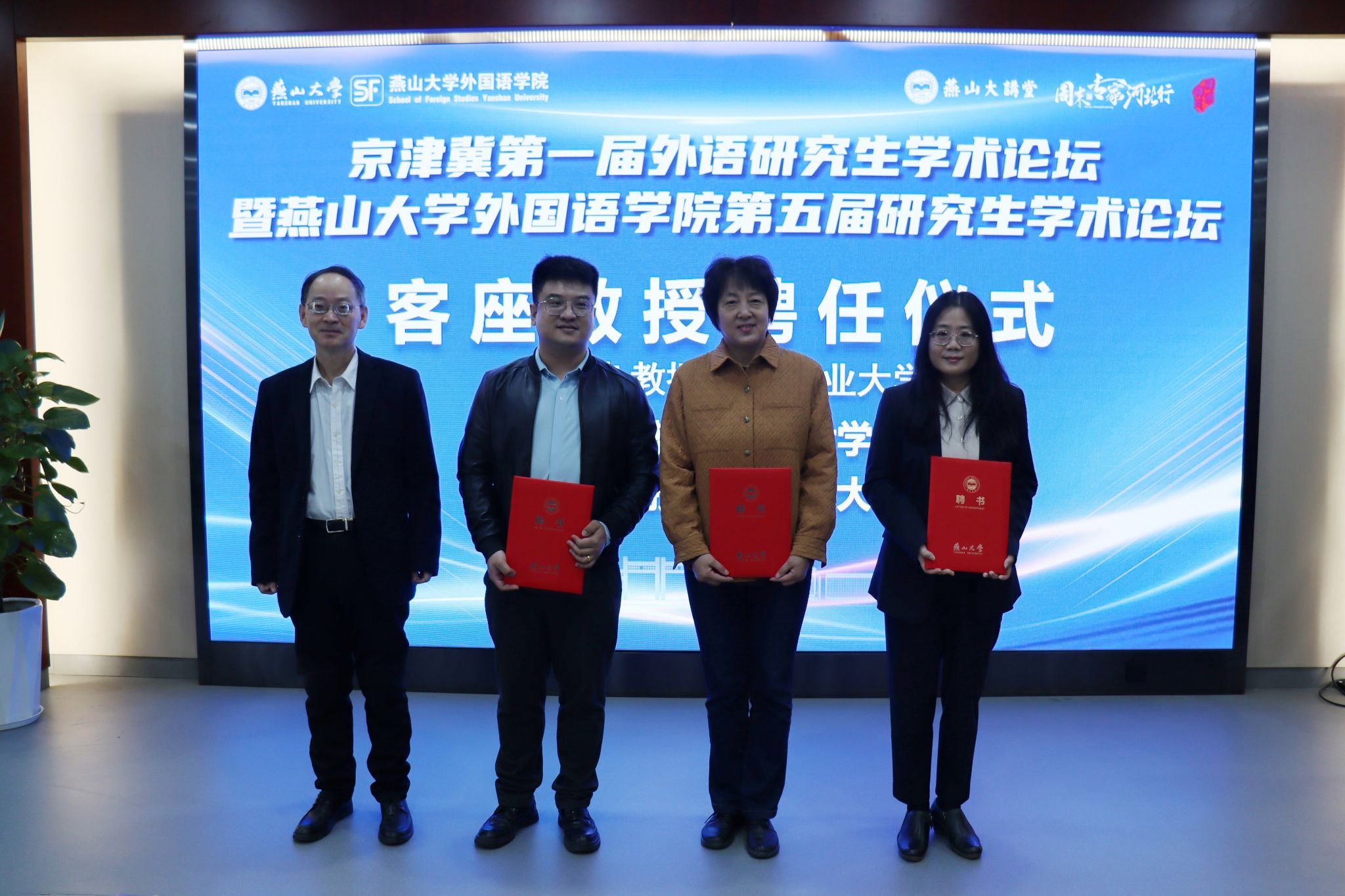 论坛进行了客座教授聘任仪式。外国语学院院长王林海为山东大学王峰教授、山西师范大学侯涛教授、河北工业大学石梅芳教授颁发了燕山大学客座教授聘任证书。