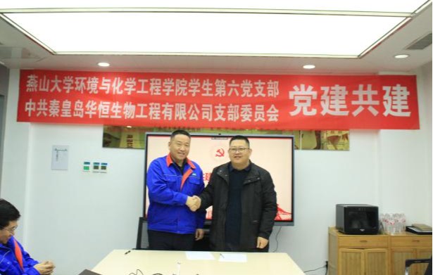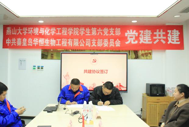随后,双方党支部书记签署了党建共建协议。此次签约仪式标志着环境与化学工程学院学生第六党支部与秦皇岛华恒生物工程有限公司党支部在党建领域的深度合作正式拉开帷幕,双方党支部将强化党建引领,逐步实现“以党建促联建、以联建促合作、以合作促发展”的生动局面。