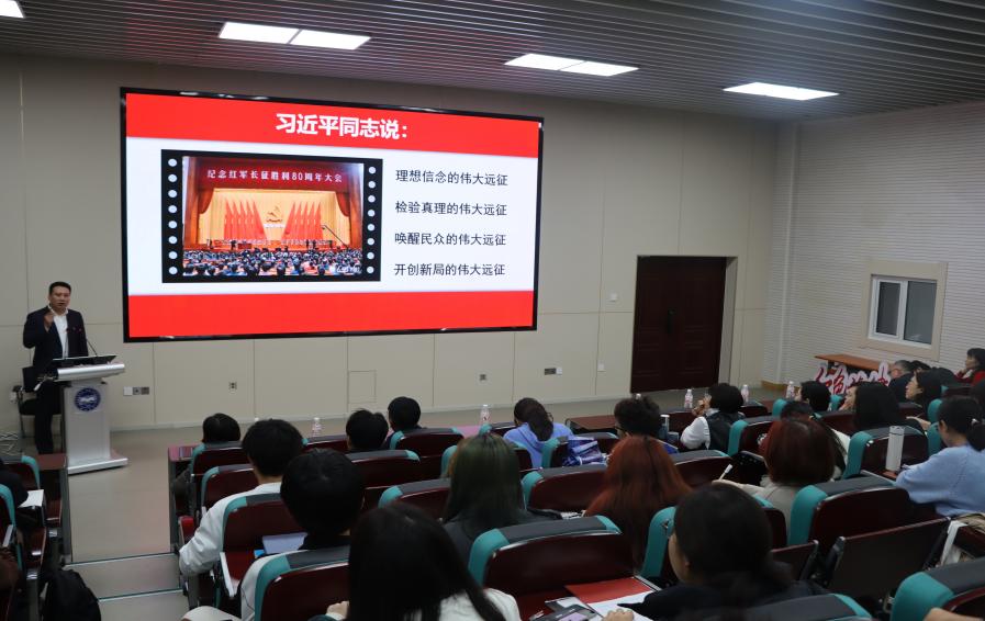 在本次讲坛中,程老师致力于引导同学们从小切口中感悟大道理,通过深入剖析长征途中的经典案例,感悟党史背后的道理,从中汲取智慧和现实启示。首先,程老师带领同学们回顾了红军四渡赤水、巧渡金沙江等事件的背景、过程以及能够取得成功的原因。然后,程老师围绕“中国共产党为什么能”这一重大历史命题,从党的领导、理想信念、群众路线、担当精神四个方面,精辟地总结了四点深刻体会。他讲到,全党领导核心的产生、党中央的坚强有力领导是走向胜利的重要保证;理想信念是创造人间奇迹的精神支撑;人民群众永远是党和人民军队的力量源泉;勇于牺牲并能直面牺牲是取得巨大成功的必需品质。随后,程老师分享了关于“通向成功、通往更广阔新天地的道路具有怎样的特征?”“如何在逆境甚至危境中走出困境?”两个问题的深刻感悟并鼓励同学们结合实际进行深入思考。最后,程老师总结“四渡赤水”的精神,即锚定终极目标,满怀敢于斗争的精气神,凭借善于斗争的能力本领,既不怕走老路,更主动闯新路的勇于探索、敢于胜利的精神。在讲坛的尾声,程老师启发大家要深刻感悟中国共产党引领人民军队从胜利走向胜利的成功之道,结合自己的工作和学习实践,反复思考党史案例带给我们的现实启示,从而为全面建成社会主义现代化强国、全面推进中华民族伟大复兴贡献自己的智慧和力量。