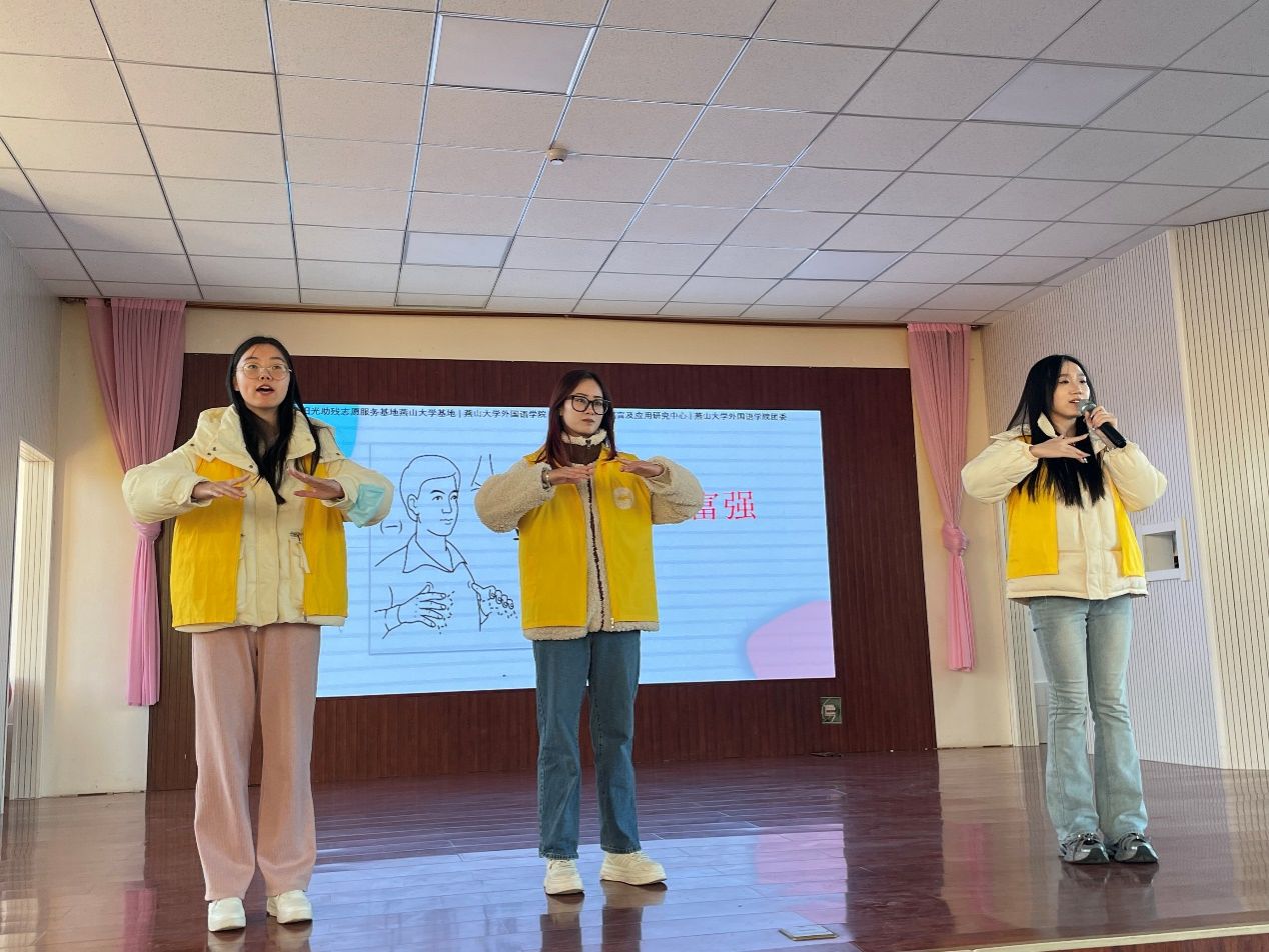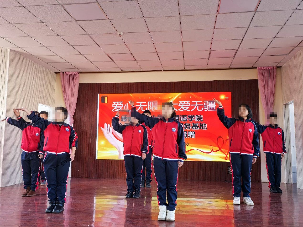 在捐赠仪式结束后,特教学校的孩子们表演了精彩的手语节目《感恩的心》,表达了对燕山大学阳光助残基地的感激之情和对未来的美好憧憬。此外,外国语学院手语志愿者和孩子们进行了互动游戏,还开展了手语课堂,教会了孩子们用手语表达自己的所思所想和社会主义核心价值观。