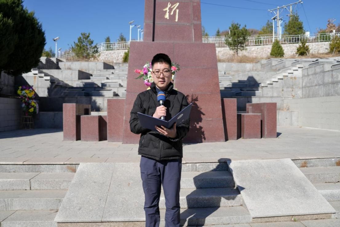 默哀毕,学生代表上前发言,话语中是对先烈们的感恩与敬仰,表达了积极向党组织靠拢、为实现中华民族伟大复兴而努力奋斗的决心。