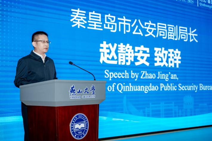 赵静安代表秦皇岛市公安局致辞。他表示,作为负责出入境管理工作的主管部门,市公安局将在签证服务、实习实践加注、校外勤工助学加注等方面,对国际学生培养和跨境电商发展提供全方位保障。