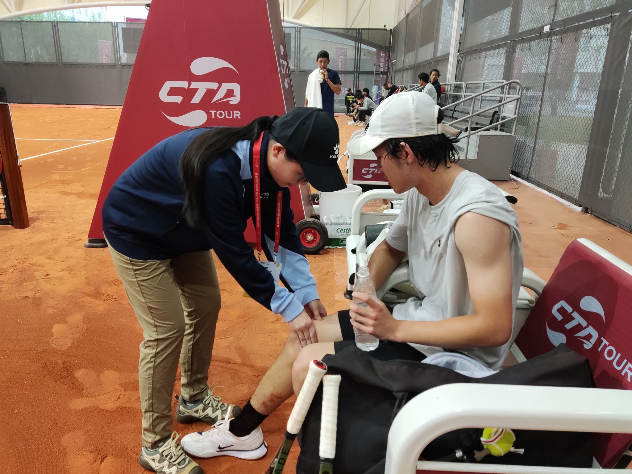 【新闻中心讯】4月20日至27日,燕山大学体育学院教师徐阔(理疗师负责人)与刘淑文(实习理疗师)受中国网球协会委派,赴浙江省湖州市全程保障2025中国网球巡回赛最高级别赛事——CTA1000湖州公开赛理疗工作。