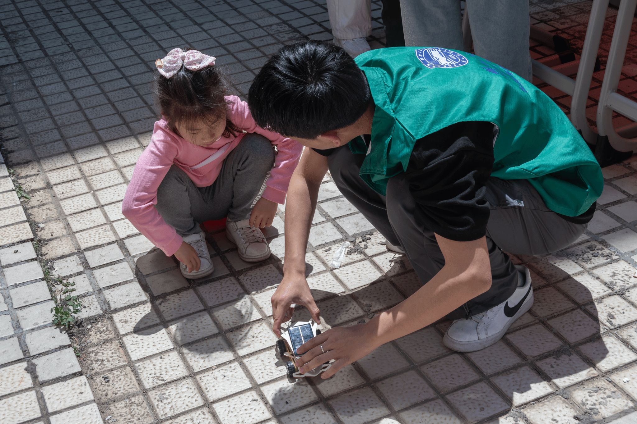 随后是科普实验互动环节,在车辆馆室外天井开展了太阳能小车制作、彩虹传送带实验和手工小火箭制作三场科普实验互动活动,让孩子们在实践中领悟科学原理,体验科学的乐趣。
