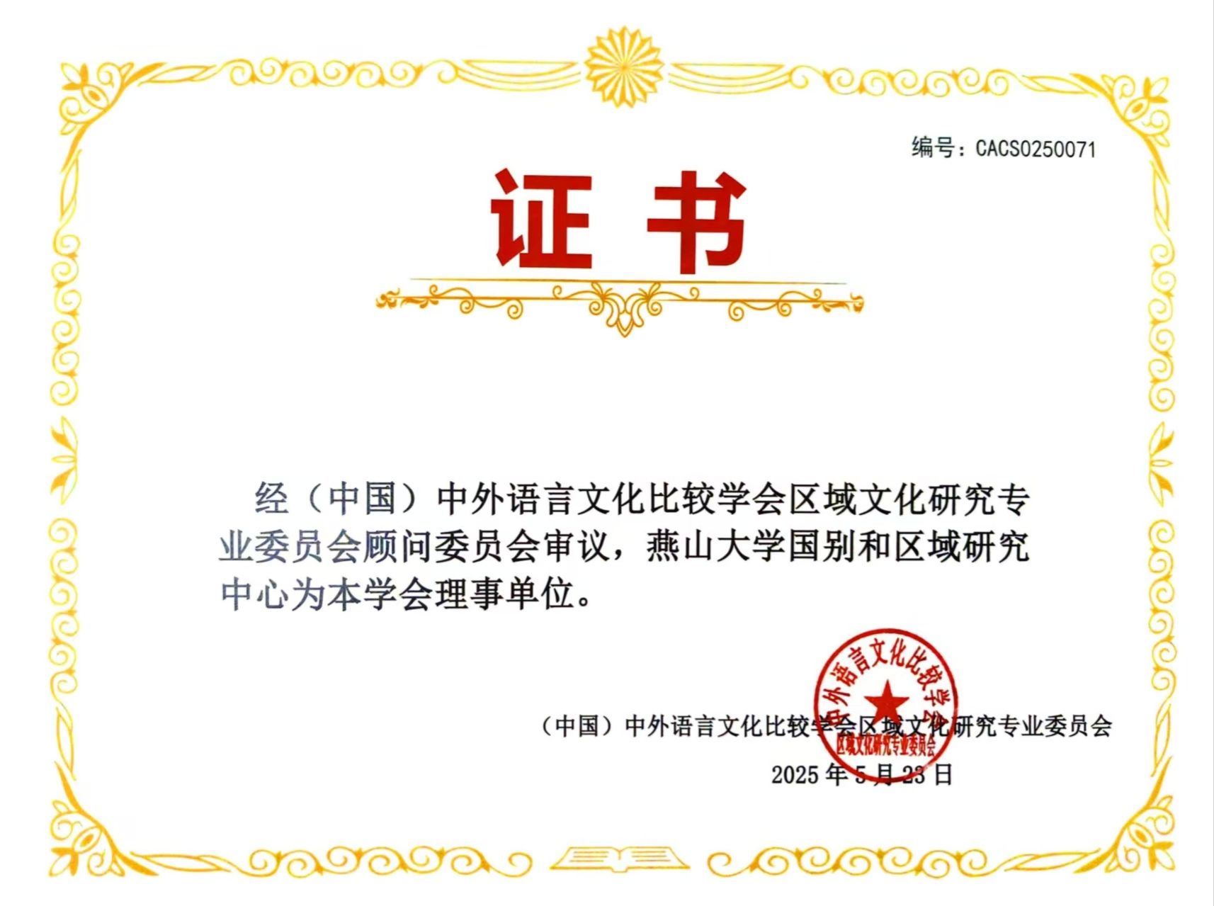 燕山大学国别和区域研究中心入选中国区域文化研究专委会理事单位