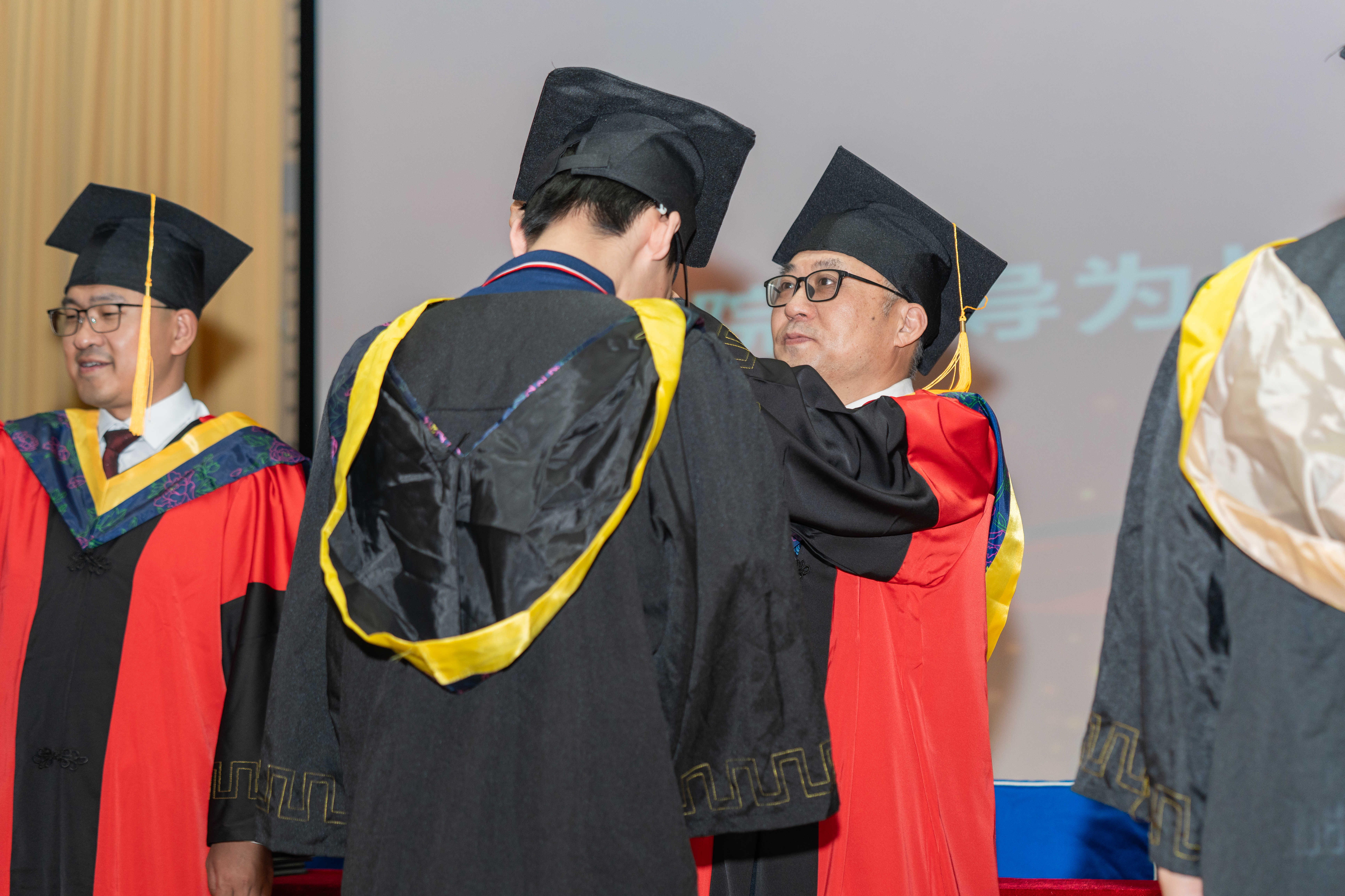 学位授予仪式将典礼推向高潮。学院领导、各系主任为全体毕业生逐一拨穗正冠,颁发学位证书并合影留念。
