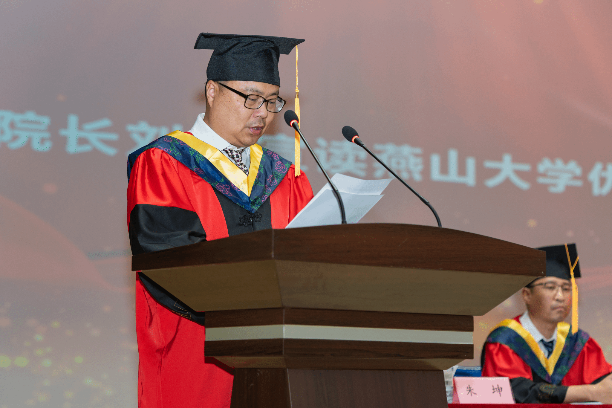 典礼在庄严的国歌声中拉开帷幕。电气工程学院副院长刘爽宣读燕山大学优秀毕业生名单。这是对毕业生过往努力的肯定,更激励全体毕业生以他们为榜样,在未来的人生道路上奋勇前行。
