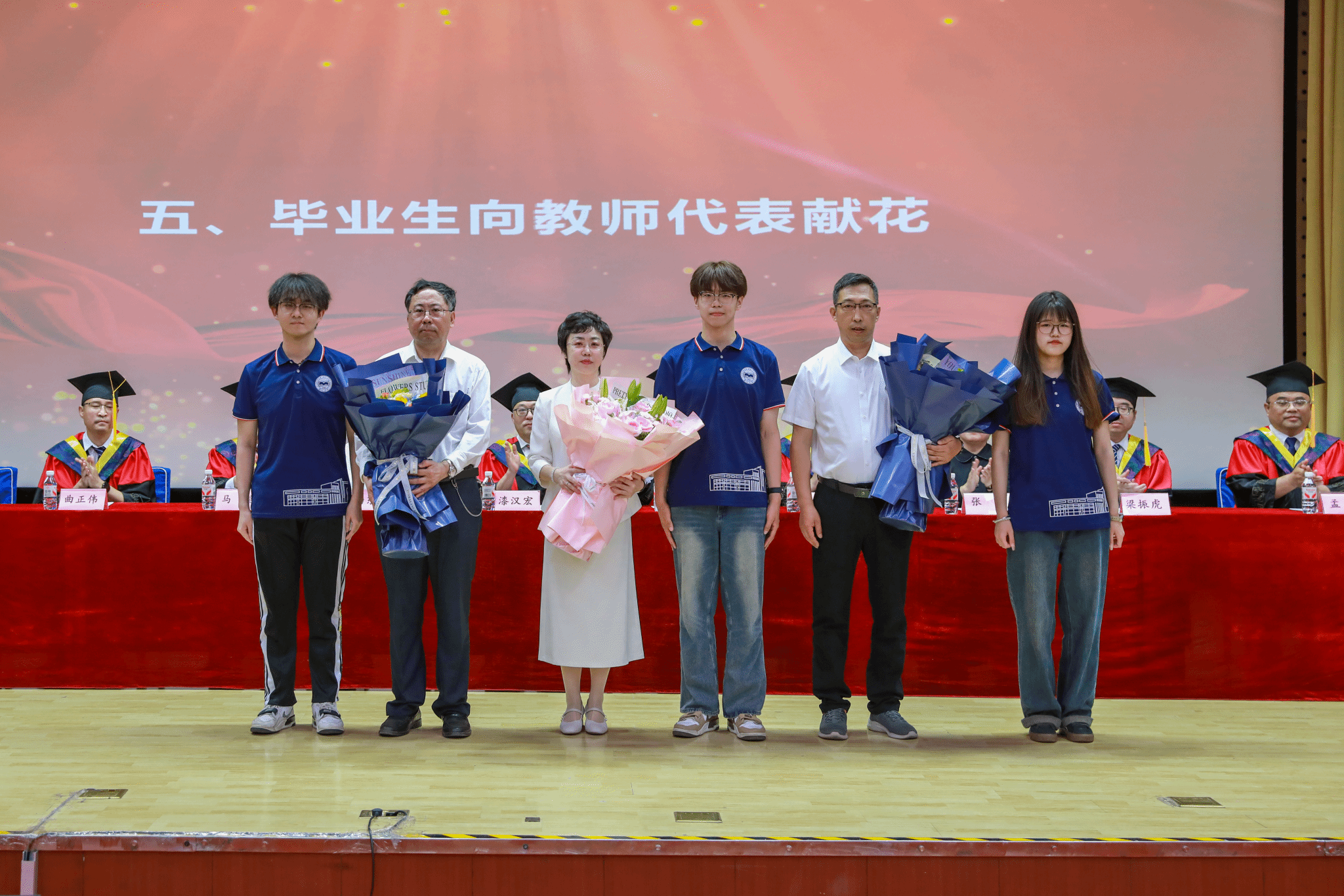 典礼上,毕业生代表将感恩之情化作芬芳的花束,献给辛勤培育他们的恩师。现场掌声雷动,这是师生情谊最真挚的表达。